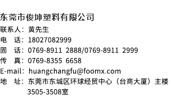 东莞市俊坤塑料有限公司,我们是一家集生产、研发、销售为一体的实体企业,并在东莞大京九塑胶城、樟木头塑胶原料市场分设有分公司。本公司经营万美TPU系列、SABIC系列、DUPONT系列、TORAY系列、出光系列等绿色新原料。自主生产产品类型:PC原料,PC+ABS,透明PC,光扩散PC,无卤阻燃PC。